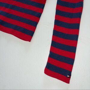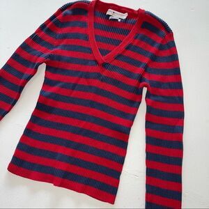 Tommy Hilfiger striped red blue navy long sleeved knit sweater top Vneck XL
