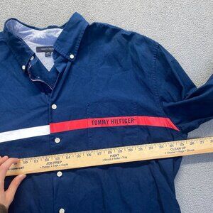 Tommy Hilfigure Custom Fit Essential Cotton Long Sleeve Blue Shirt Size XXL