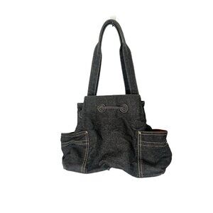 Tommy Hilifiger Denim Drawstring Bucket Style Shoulder Bag Y2K 00s Gray Black