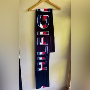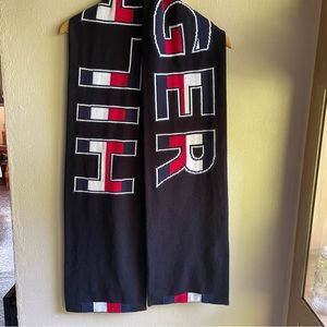 Tommy Hillfager Large Spell-out Collegiate Sweater Scarf. Dual layered sweater knit. Very warm and soft Cotton / Poly Blend. Black base with large Red, White & Blue Letters. A very generous 76" Long.