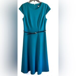 Chic dark green midi career dress by Tommy Hilfiger. Features a sleek black belt. Perfect for a sophisticated look at the office or any occasion. Great condition-only worn once! Sz 8