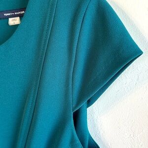 Tommy Hillfiger Emerald Green Career Modest Cap Sleeve Belted Midi Dress Sz 8