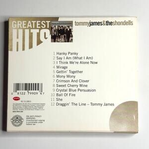 Description: For sale is The Essentials: Tommy James & The Shondells – Greatest Hits, a compilation CD released by Rhino Records in 2002 (Catalog #R2 76039). This collection features 12 classic tracks from one of the most iconic pop-rock bands of the 1960s. Includes timeless hits such as Hanky Panky, I Think We’re Alone Now, Mony Mony, Crimson and Clover, Crystal Blue Persuasion, and more. Also features Tommy James’ solo hit Draggin’ The Line.