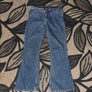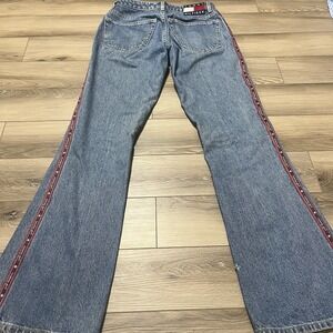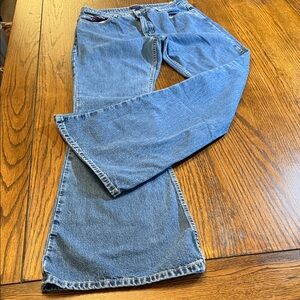 Tommy Jeans loose. See photos for measurements. Tag reads 9 another tag says 34. Please use a pair of your current jean measurements to determine if these will work. Button Fly.
