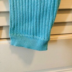 Size S/P Soft ribbed no-pill 100% cotton knit Cardigan sweater in a pastel aqua shade (blue/green), accented with a sunny pastel yellow crew neck. Tommy Jeans (by Tommy Hilfiger). Excellent condition, gently used.