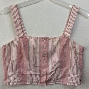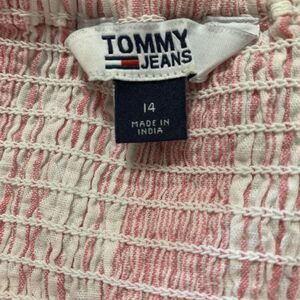 Tommy Jeans Crop Top Women 14 Pink White Sleeveless Hilfiger Logo Preppy Summer