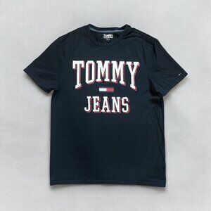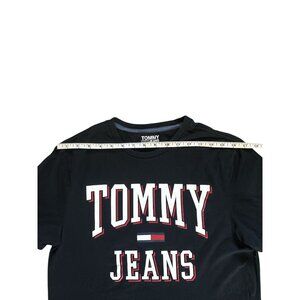 Tommy Jeans Graphic T-Shirt Mens M Black Cotton Y2K 90s Casual Crewneck Logo