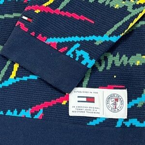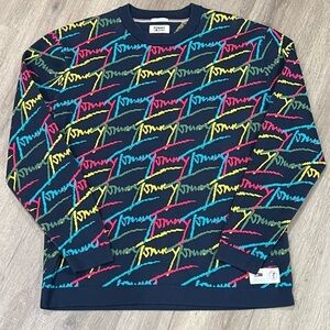 Tommy Jeans Hilfiger Large Oversight Script Pattern Crewneck Knit Sweater VTG