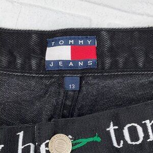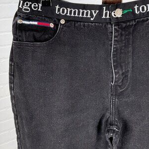 Tommy Jeans Juniors 13 31Wx29.5L Black Logo Tape Waist Cotton Taper 80s VTG