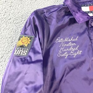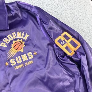 Tommy Jeans Phoenix Suns Jacket Mens Large Purple Snap Satin Bomber Logo New
