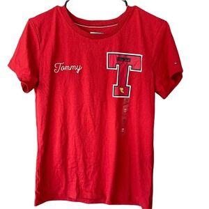 Tommy Jeans Red Embroidered Varsity Short Sleeve Crew New Neck T-Shirt Medium