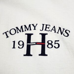 Features classic Tommy Jeans embroidered front logo: "TOMMY JEANS 1985 H" in navy, white, and red