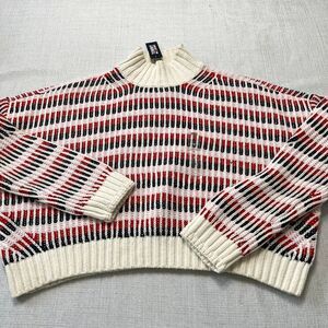 Tommy Jeans Women's Multi Plaited Sweater Wool Blend White/Multi Size M NWT