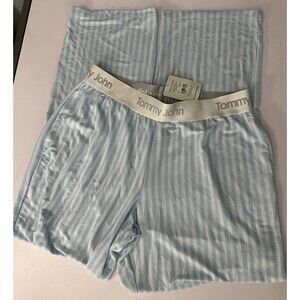 Tommy John 2 Pc Set NWT $116 Second Skin Lounge Sleep Tee XL Pant L Blue Stripe