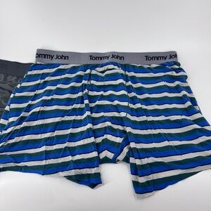 Experience comfort with Tommy John men's boxer briefs. Featuring a stylish blue and green striped design and a classic gray option, these boxers offer both style and versatility.