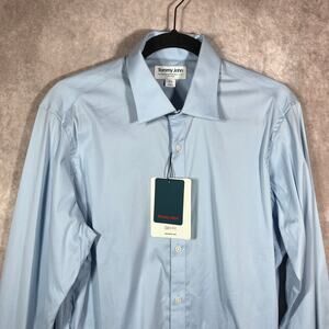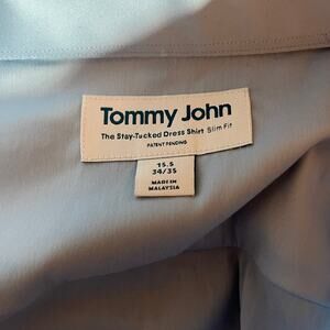 Tommy John Stay Tucked Dress Shirt Mens 15.5 34-35 Blue Slim Fit Button Up NEW