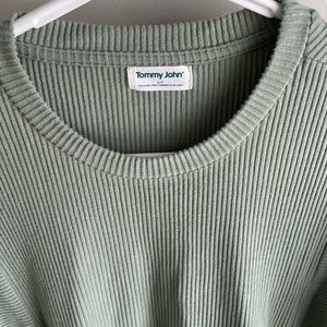 Super comfy Tommy John lounge set which includes a crew neck long sleeve top (with pockets) and jogger bottoms. Really soft ribbed fabric. The best loungewear outfit! Soft and cozy and stretchy.