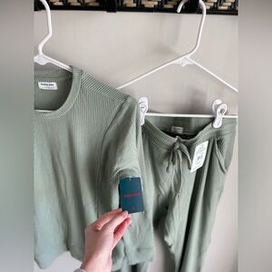 Tags: Tommy John, pajamas, loungewear, joggers, sweat pants, sweats, comfy, cozy, ribbed, green, sage green, light green