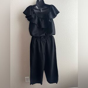 Tommy Bahama Jumpsuit Women M Black Linen Blend Off Shoulder Cropped Belted