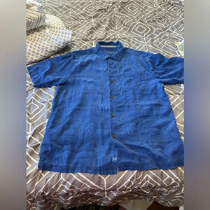 Tommy Bahama Blue Hawaiian Floral Leaf Print Button Up Shirt Size Large