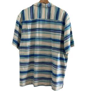 Tommy Bahama Blue and Cream Watercolor Striped Silk Shirt Men's Size XL