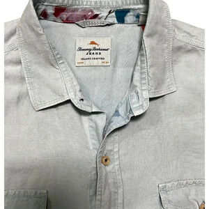 Tommy Bahama Chambray Linen Button Down Shirt XL Blue Island Crafted Long Sleeve