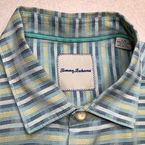 Tommy Bahama Large Pixel in Paradise Camp Shirt Waterfront Silk Turquois…