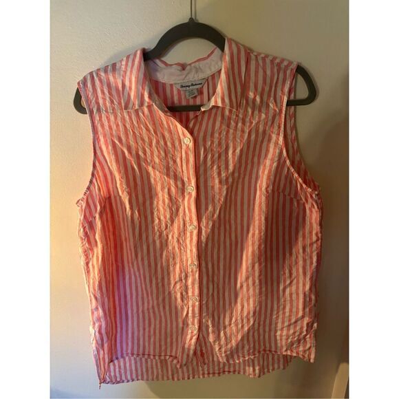 Pit to pit: 20” Length: 27” Light red and white stripes Linen Excellent condition