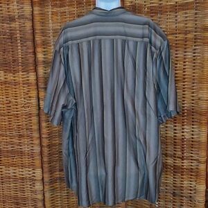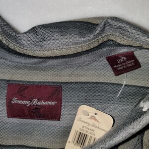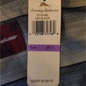 This is a brand new w/tag Tommy Bahama 100% silk shirt. It has coconut buttons up the front and a pocket on left chest.