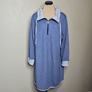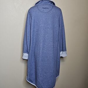 Reversible pullover dress with classic stripes or solid heathered blue. Comfortable and versatile design. Tommy Bahama XL Flipside Half Zip Sweatshirt Dress Reversible Striped Island Navy Blue in very excellent condition