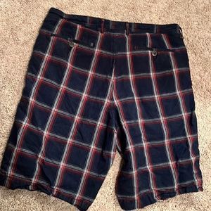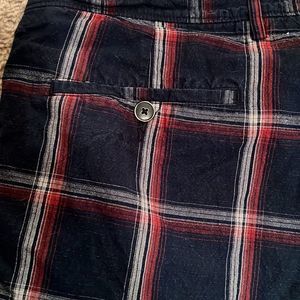 Size 34 with 10 1/2 inseam.4 pockets.Two side and two back that button closed
