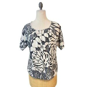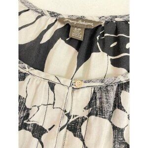 Tommy Bahama Black White Hawaiian Reverse Print Top Small