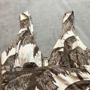 Tommy Bahama Brown & Cream Tropical Print Ruched One Piece Swimsuit - Size 6