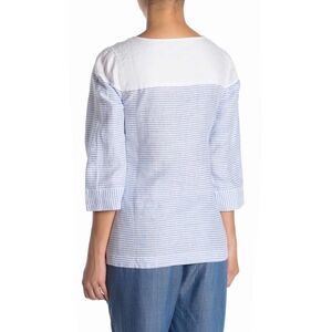 Enjoy the sunshine even when sipping rosé on the bow of the boat in this striped top. The stripes have a watercolor look and the slight contrast in pattern adds style.