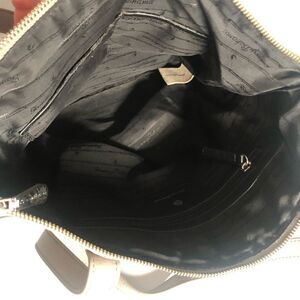 Tommy Bahama tote bag in Calf leather. Two outside pockets. Silver hardware and decorative stitches. One zipper pocket inside