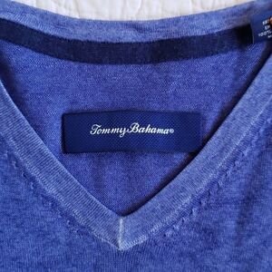 Fading at the reverse-stitched seams brings a well-worn, deconstructed vibe to a classic V-neck sweater in an extra-fine knit of soft merino wool. Style Name: Tommy Bahama Magic Sands 100% Merino Wool Sweater. Dry clean only.