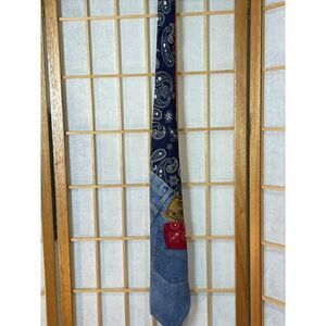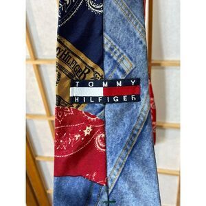 Classic silk tie from Tommy Hilfiger. Features jeans/bandana design. 100% Italian silk. Made in the USA. Length51". Greatest width 3.25" Excellent condition. Nonsmoking home.