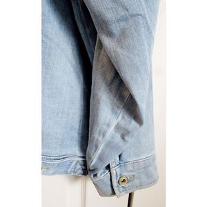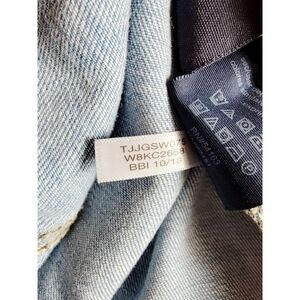 Tommy Hilfiger 2X Hoodie Women Full Zip Denim Jacket Patches Acid Wash