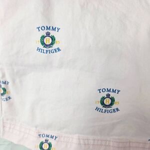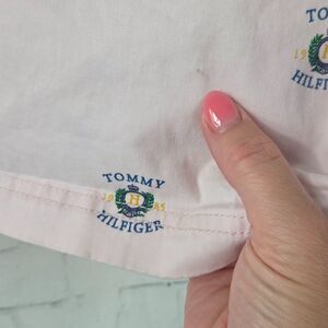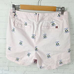Tommy Hilfiger 5" Inch Classic Stretch Short Size 4 Pink Crest Graphic Spell Out. Good pre-owned condition, one small light mark on the back a couple inches from the hem as pictured.