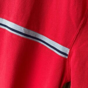 Color: Warm red with light blue & navy chest stripe