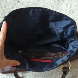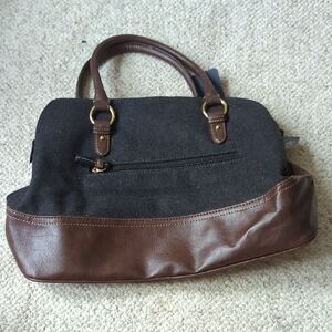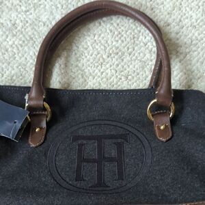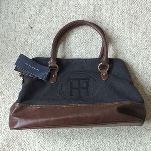 Elegant tote with Tommy Hilfiger logo. Charcoal fabric with chocolate leather accents. Perfect for everyday use.