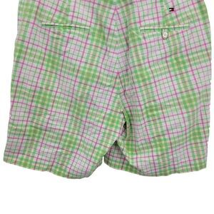 Tommy Hilfiger Golf Shorts 8 Green Pink Plaid High-rise Bermuda Tee Holder