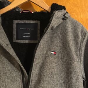 Tommy Hilfiger Jacket Mens Medium Zip Pockets Gray Fleece Sherpa