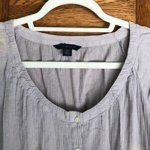 Tommy Hilfiger- Scoop neck Semi Button Up Mini Dress. Dress features short Puff Sleeves(Please note Left Sleeve has minor marks).