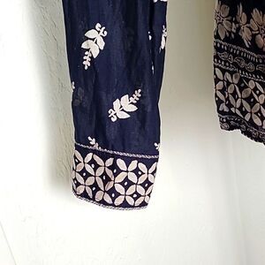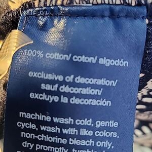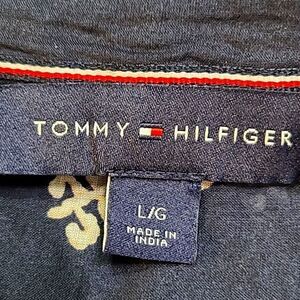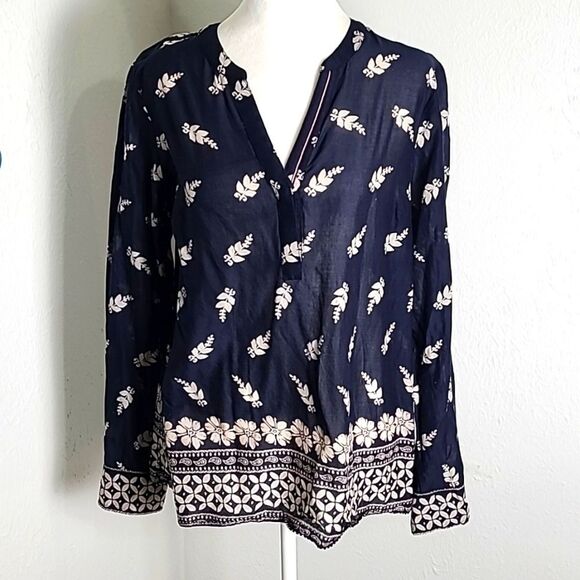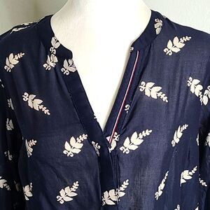Tommy Hilfiger Navy Blue Top White Flowers, V-neckline, Longsleeves, Size Large