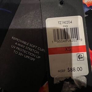 Tommy Hilfiger Navy Coral Water Iris Floral-Print Tankini Swim Top XS NWT