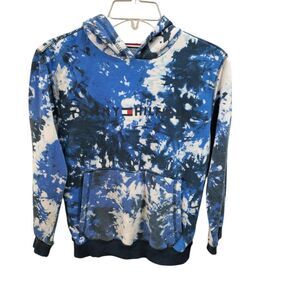 blue and white Tommy Hilfiger hoodie