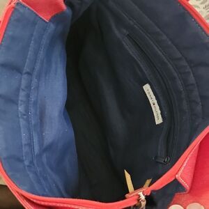 Tommy Hilfiger Red Canvas Tote Bag Wirh Faux Leather Accents