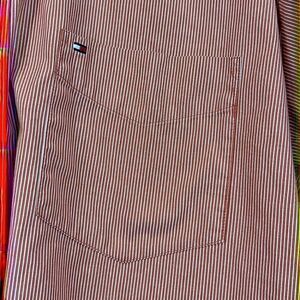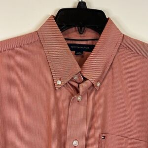 Tommy Hilfiger Red & White Small Stripe Button Down Dress Shirt - Size Large