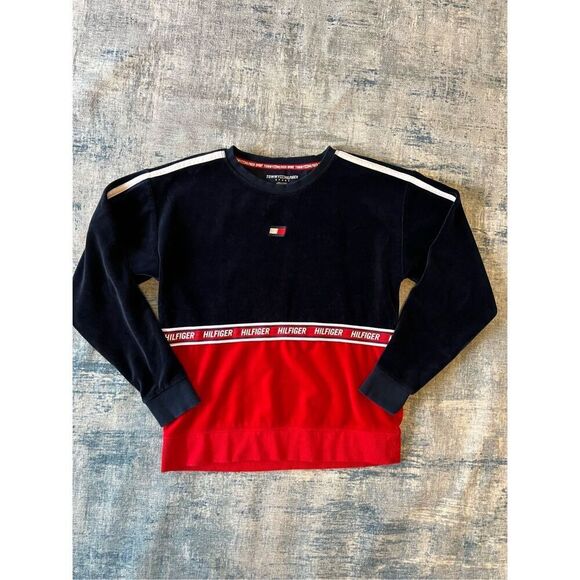 Tommy Hilfiger Sport Red White Blue Velvet Crewneck Sweater XS